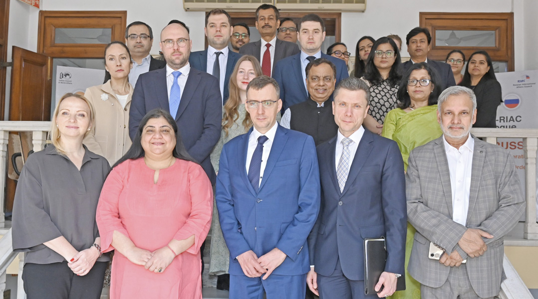 बाएं से दाएं: राजदूत विजय ठाकुर सिंह, महानिदेशक, आईसीडब्ल्यूए; राजदूत ग्रेगरी लोगविनोव, उप महासचिव, शंघाई सहयोग संगठन; राजदूत दम्मू रवि, सचिव (ईआर), विदेश मंत्रालय, भारत सरकार; डॉ. निवेदिता रे, निदेशक अनुसंधान, आईसीडब्ल्यूए, शंघाई सहयोग संगठन पर अंतर्राष्ट्रीय सम्मेलन के उद्घाटन सत्र में: पुनःसंयोजन - पुनर्नवीयन, 23-24 मार्च 2023